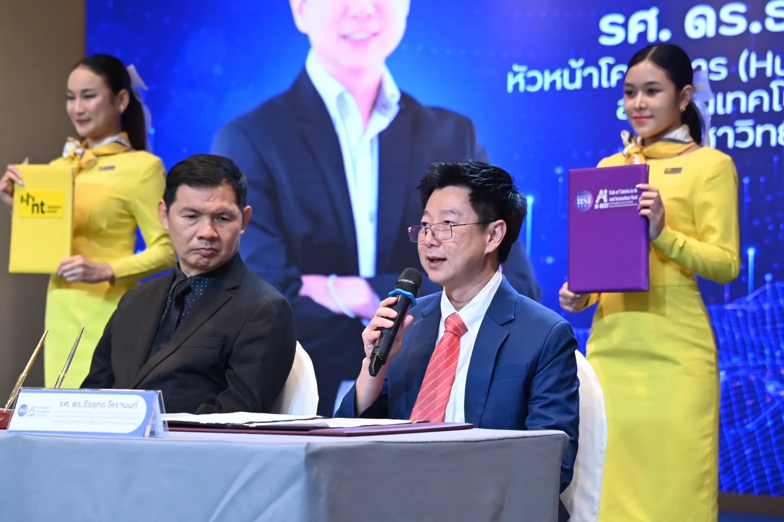 พันเอก สรรพชัยย์ หุวะนันทน์ กรรมการผู้จัดการใหญ่ บริษัท โทรคมนาคมแห่งชาติ จำกัด (มหาชน) (NT) ลงนามบันทึกข้อตกลงความร่วมมือ (MOU) ด้านเทคโนโลยีวิทยาการข้อมูลนวัตกรรมและปัญญาประดิษฐ์ ร่วมกับ ศูนย์วิจัยข้อมูลอัจฉริยะและนวัตกรรมการบริการ (IISI) โดย ศาสตราจารย์ ดร.ธนารักษ์ ธีระมั่นคง และ โครงการศูนย์รวมผู้เชี่ยวชาญด้านเทคโนโลยีปัญญาประดิษฐ์และนวัตกรรมแห่งอนาคต (Hub of Talents in AI and Innovation Next (AI-Next) ภายใต้สถาบันเทคโนโลยีนานาชาติสิรินธร มหาวิทยาลัยธรรมศาสตร์ โดย รองศาสตราจารย์ ดร.ธีรยุทธ โหรานนท์ และ สมาคมปัญญาประดิษฐ์ประเทศไทย (AIAT) โดย ดร.เทพชัย ทรัพย์นิธิ เพื่อการต่อยอดความร่วมมือพัฒนาโครงการด้านเอไอ ณ ห้องจัดเลี้ยง อาคาร 9 สำนักงาน NT แจ้งวัฒนะ
