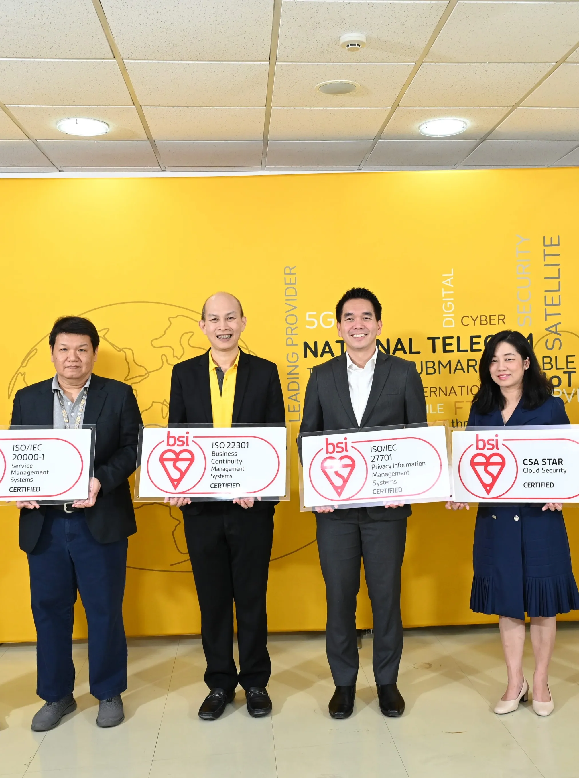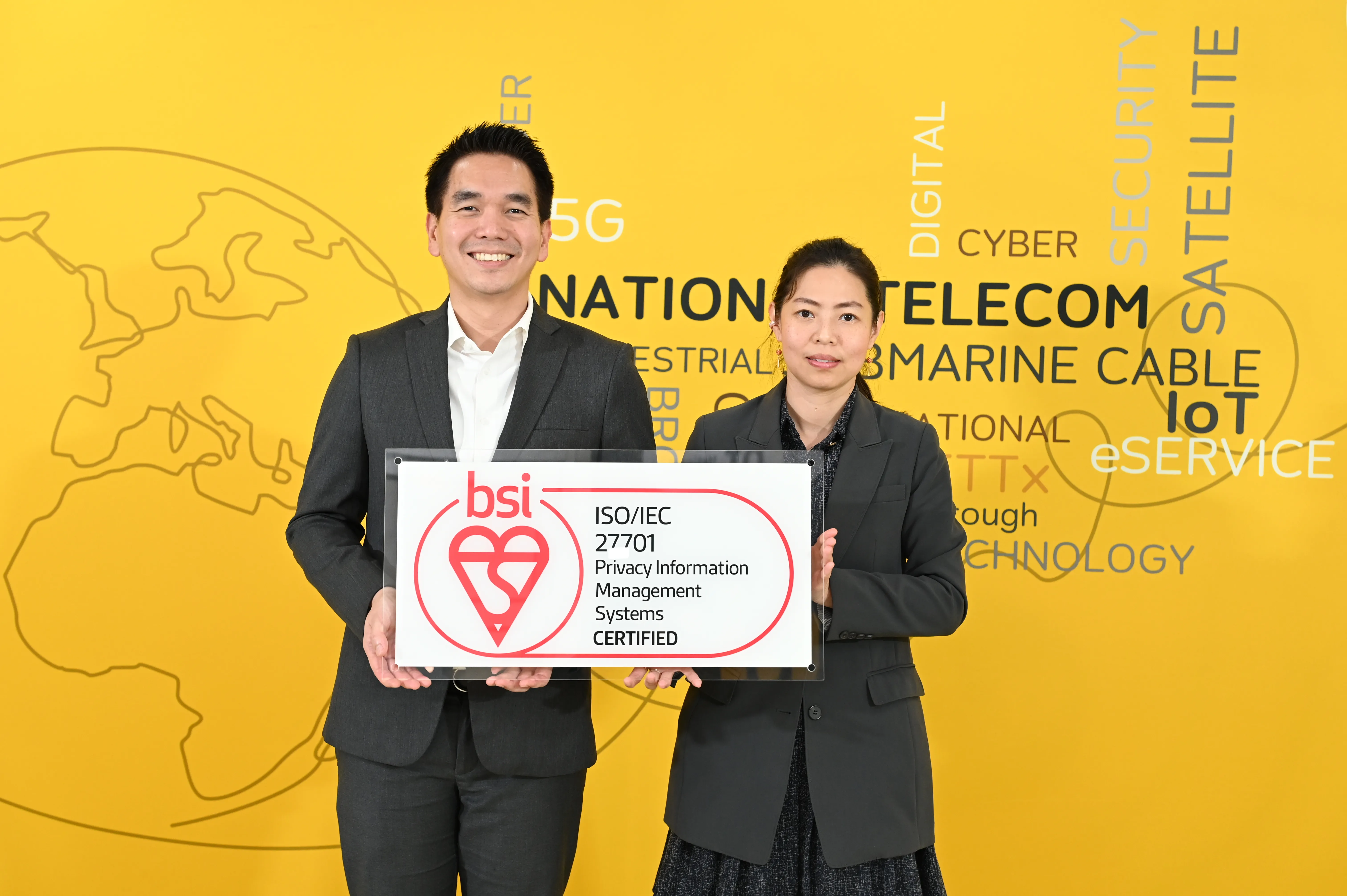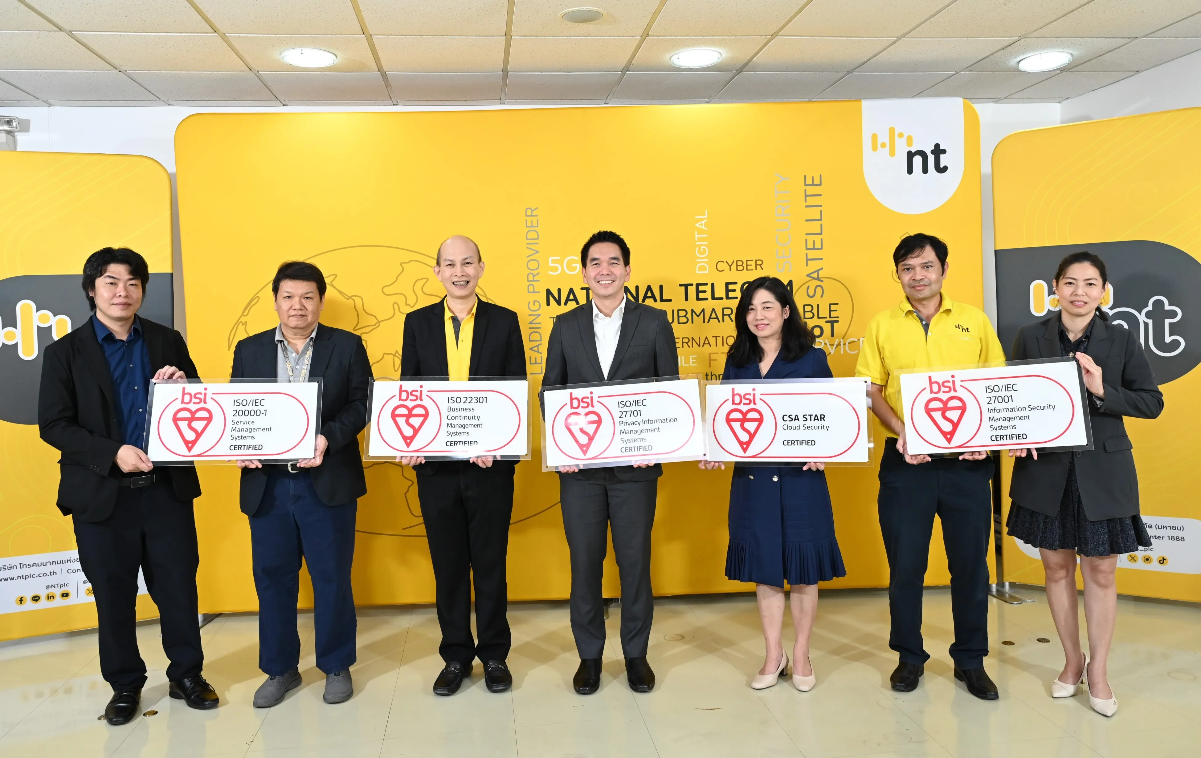 นายวงกต วิจักขณ์สังสิทธิ์ รองกรรมการผู้จัดการใหญ่สายงานดิจิทัลและโซลูชั่น บริษัท โทรคมนาคมแห่งชาติ จำกัด (มหาชน) หรือ NT รับมอบประกาศนียบัตรรับรองมาตรฐานสากล ISO/IEC 27001 จาก บริษัท บีเอสไอ กรุ๊ป (ประเทศไทย) จำกัด สถาบันรับรองมาตรฐานแห่งชาติของประเทศอังกฤษ (The British Standards Institution-BSI) ในโอกาสที่ศูนย์ NT Internet Data Center (NT IDC) ได้รับการรับรองมาตรฐานการจัดการข้อมูลส่วนบุคคลที่มีศักยภาพในการให้บริการในระดับสากล ณ ศูนย์ NT IDC สำนักงานแจ้งวัฒนะ