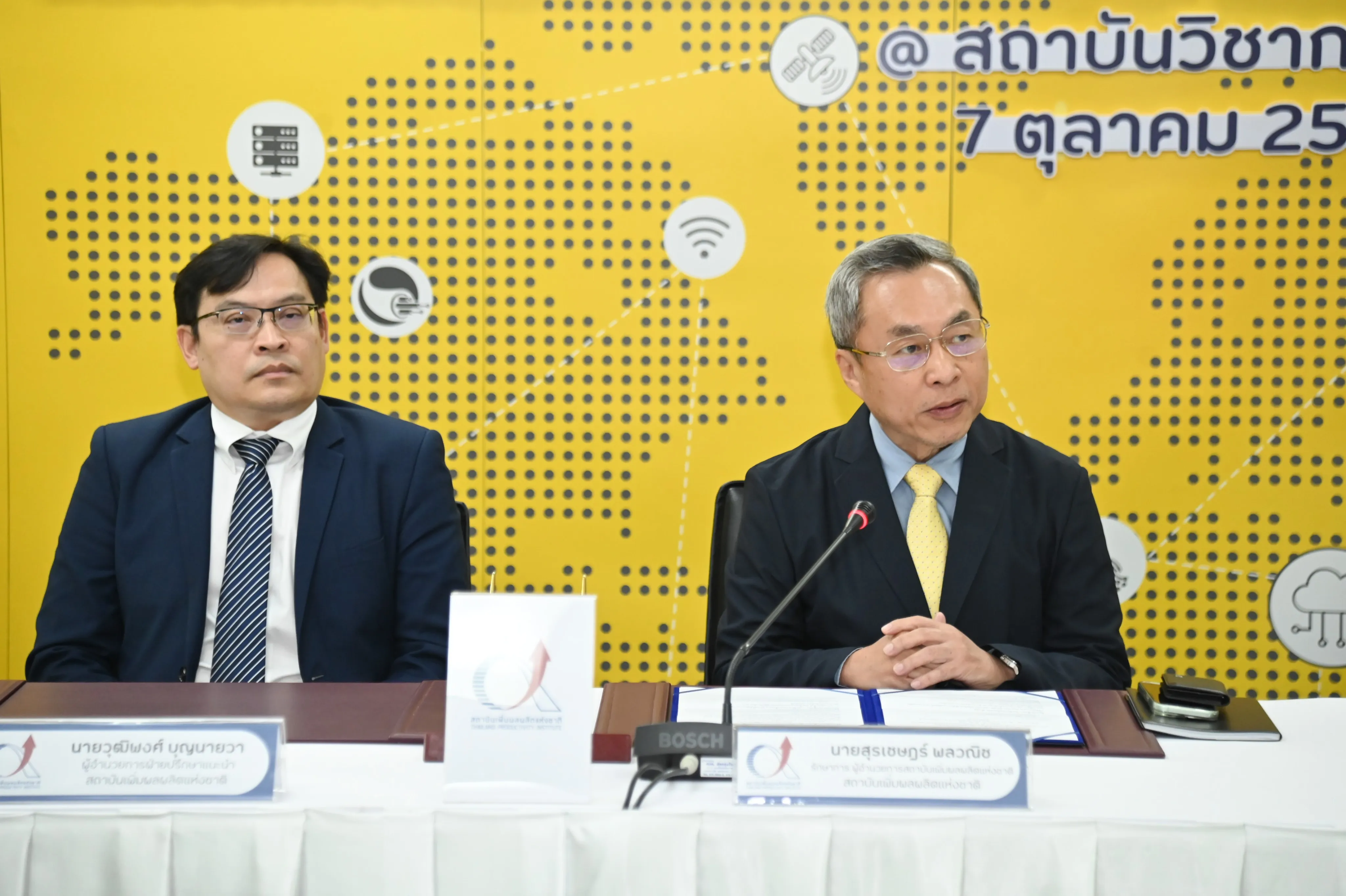 นายสุรเชษฎ์ พลวณิช รักษาการผู้อำนวยการสถาบันเพิ่มผลผลิตแห่งชาติ กล่าวว่า สถาบันเพิ่มผลผลิตแห่งชาติ เป็นสถาบันชั้นนำด้านการจัดการองค์กรที่ให้บริการปรึกษาแนะนำ ฝึกอบรม วิจัยพัฒนา รณรงค์ส่งเสริมและผลักดันให้เกิดขบวนการเพิ่มผลิตภาพเพื่อการเติบโตอย่างยั่งยืนในทุกภาคส่วนของสังคม อันนำไปสู่การพัฒนาศักยภาพและเพิ่มขีดความสามารถทางการแข่งขันของประเทศในระดับสากล โดยการผนึกกำลังของ 2 องค์กรในครั้งนี้ มุ่งมั่นที่จะเพิ่มทักษะ ยกระดับศักยภาพบุคลากร ด้วยความรู้ด้านผลิตภาพและด้านเทคโนโลยีดิจิทัล เป็นอีกแรงสนับสนุนให้องค์กรไทยพร้อมรับมือกับการเปลี่ยนแปลงที่เกิดขึ้นได้ทันท่วงที ด้วยการออกแบบหลักสูตรอบรมครอบคลุมหลายด้านที่ผสมผสานทั้งทฤษฎีและปฏิบัติ การพัฒนาทักษะบุคลากรให้ตอบโจทย์จริงของ สถานประกอบการ สามารถยกระดับทักษะบุคลากรและองค์กรไทย ให้แข่งขันได้อย่างมีประสิทธิภาพและยั่งยืน สำหรับสถาบันเพิ่มผลผลิตแห่งชาติซึ่งได้มาร่วมเป็นเครือข่ายความร่วมมือของสถาบันวิชาการ NT ก็จะร่วมกันกำหนดกรอบและแผนงานความร่วมมือในการยกระดับศักยภาพสถานประกอบการในด้านเทคโนโลยีดิจิทัล สามารถนำหลักสูตรไปถ่ายทอดองค์ความรู้เพื่อพัฒนาผู้ประกอบการในรูปแบบ การสัมมนา การอบรมภาคทฤษฎี และภาคปฏิบัติ โดยจะมีการพัฒนาปรับปรุงหลักสูตรอบรมร่วมกันต่อไป