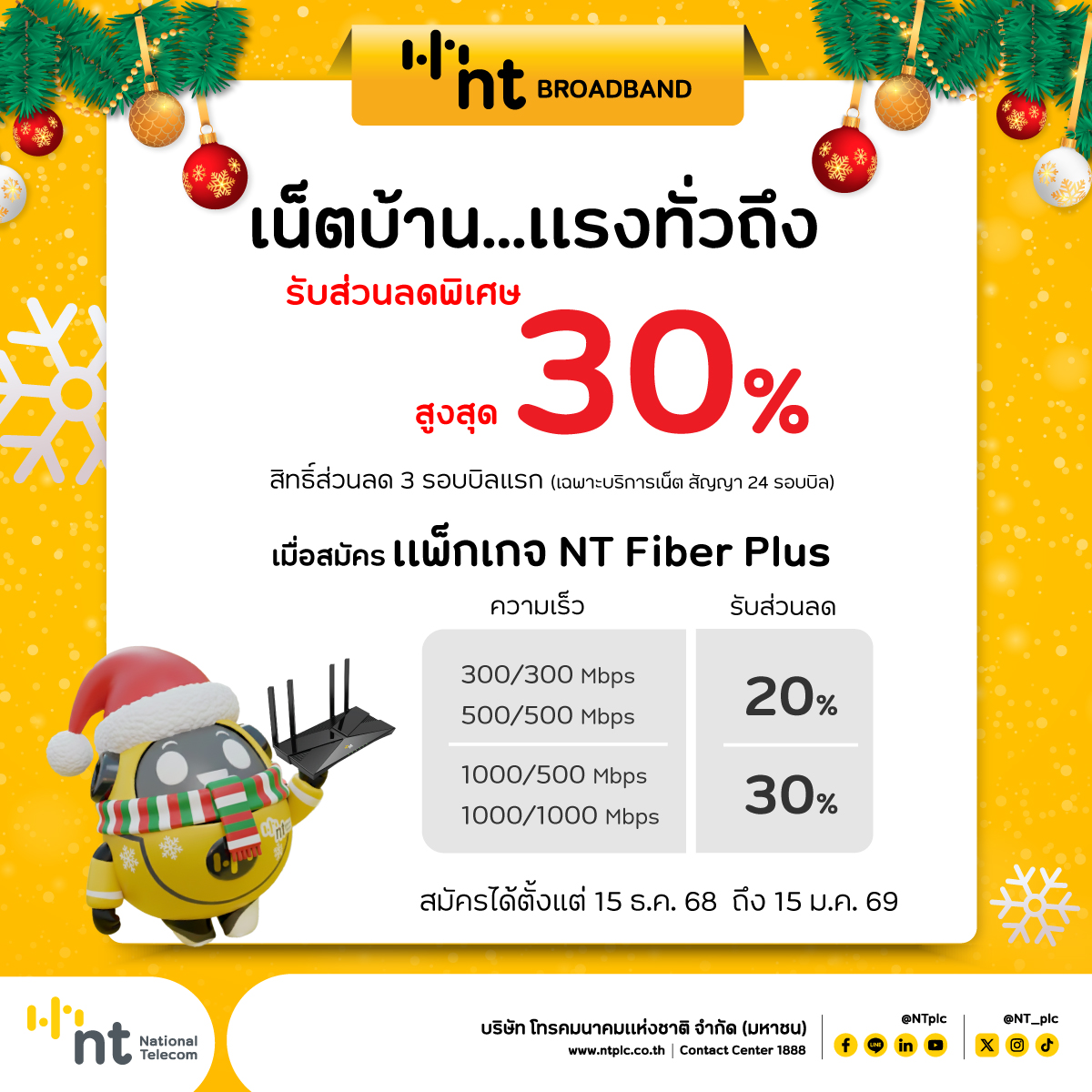 🖥️ NT Broadband เน็ตบ้าน...แรงทั่วถึง รับส่วนลดพิเศษสูงสุด 30%