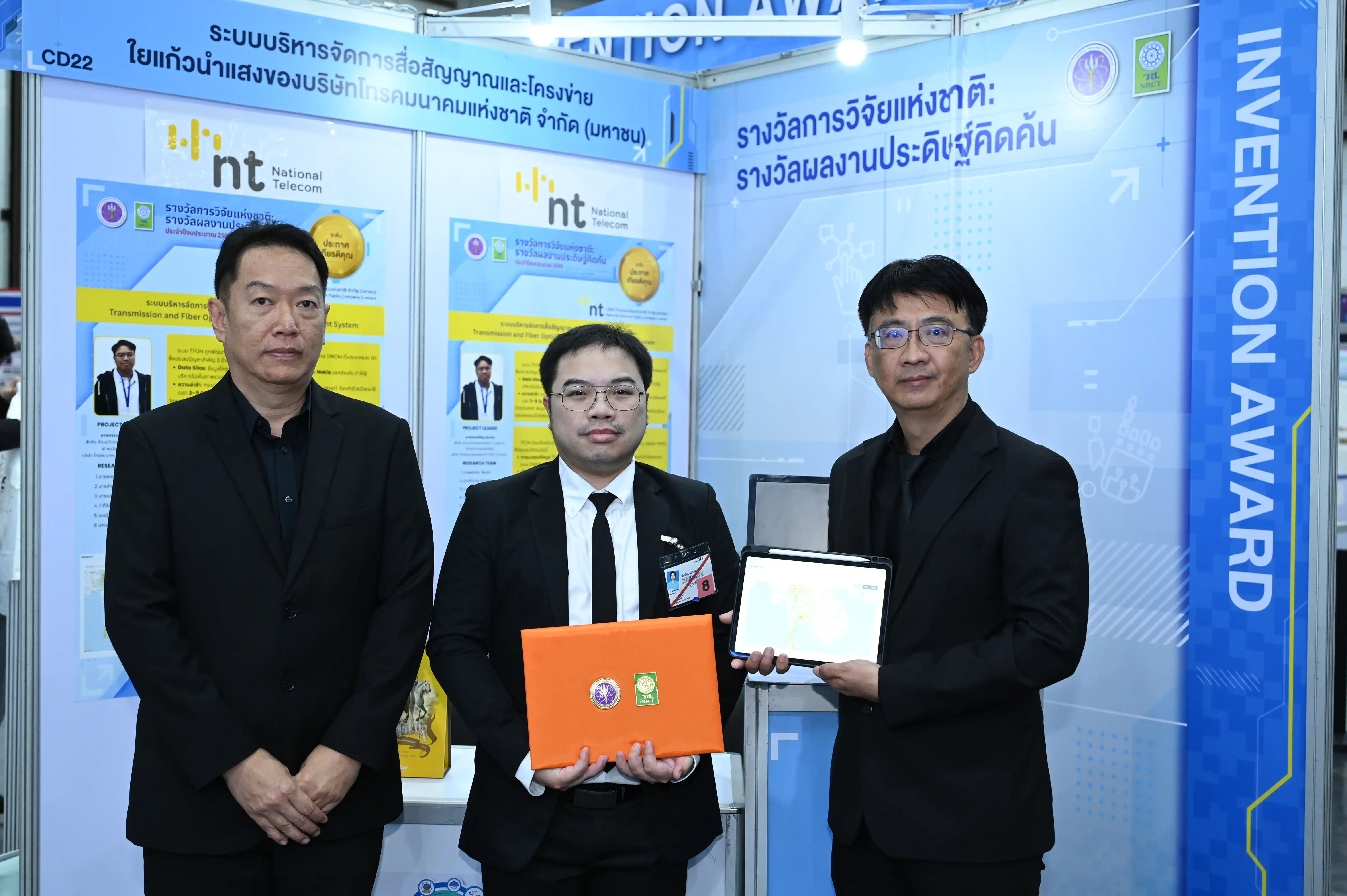 สุทธเตมีย์ และคณะ โดยมี นายวรวิทย์ รอดอนันต์ ผู้จัดการฝ่ายนวัตกรรมองค์กร NT ร่วมแสดงความยินดี ณ Event Hall