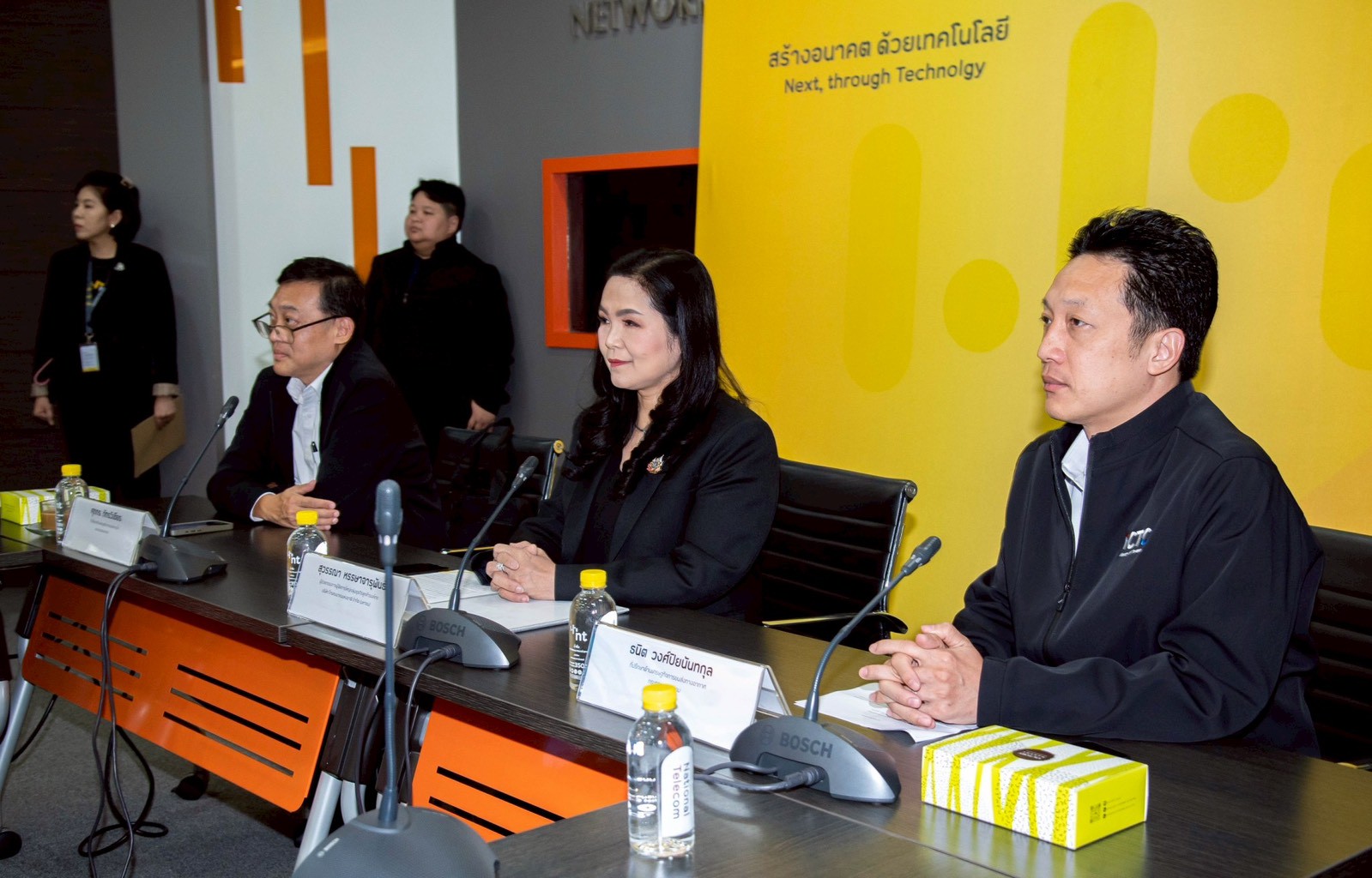 นางสุวรรณา หรรษาจารุพันธ์ ผู้ช่วยกรรมการผู้จัดการใหญ่กลุ่มธุรกิจลูกค้าองค์กร บริษัท โทรคมนาคมแห่งชาติ จำกัด (มหาชน) หรือ NT ให้การต้อนรับ นายธนิต วงศ์ปิยนันทกุล ที่ปรึกษาด้านเศรษฐกิจการขนส่งทางอากาศ กระทรวงคมนาคม ในโอกาสนำคณะทำงานพัฒนาระบบคมนาคมอัจฉริยะของกระทรวงคมนาคม เข้าศึกษาดูงานโดยรับฟังการบรรยายเกี่ยวกับ โครงสร้างพื้นฐาน 5G, โครงสร้างพื้นฐานดิจิทัล, ระบบ Smart Drone, เทคโนโลยี Cloud Computing และระบบคลาวด์กลางภาครัฐ (GDCC)