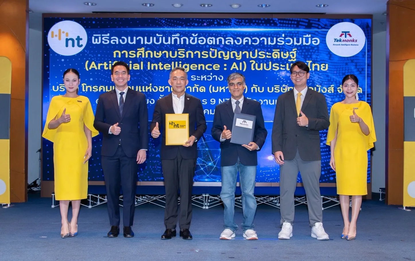 บริษัท โทรคมนาคมแห่งชาติ จำกัด (มหาชน) (NT) และ บริษัท เทคมังส์ จำกัด (TekMonks) ลงนามบันทึกข้อตกลงความร่วมมือ (MOU) ศึกษาบริการปัญญาประดิษฐ์
