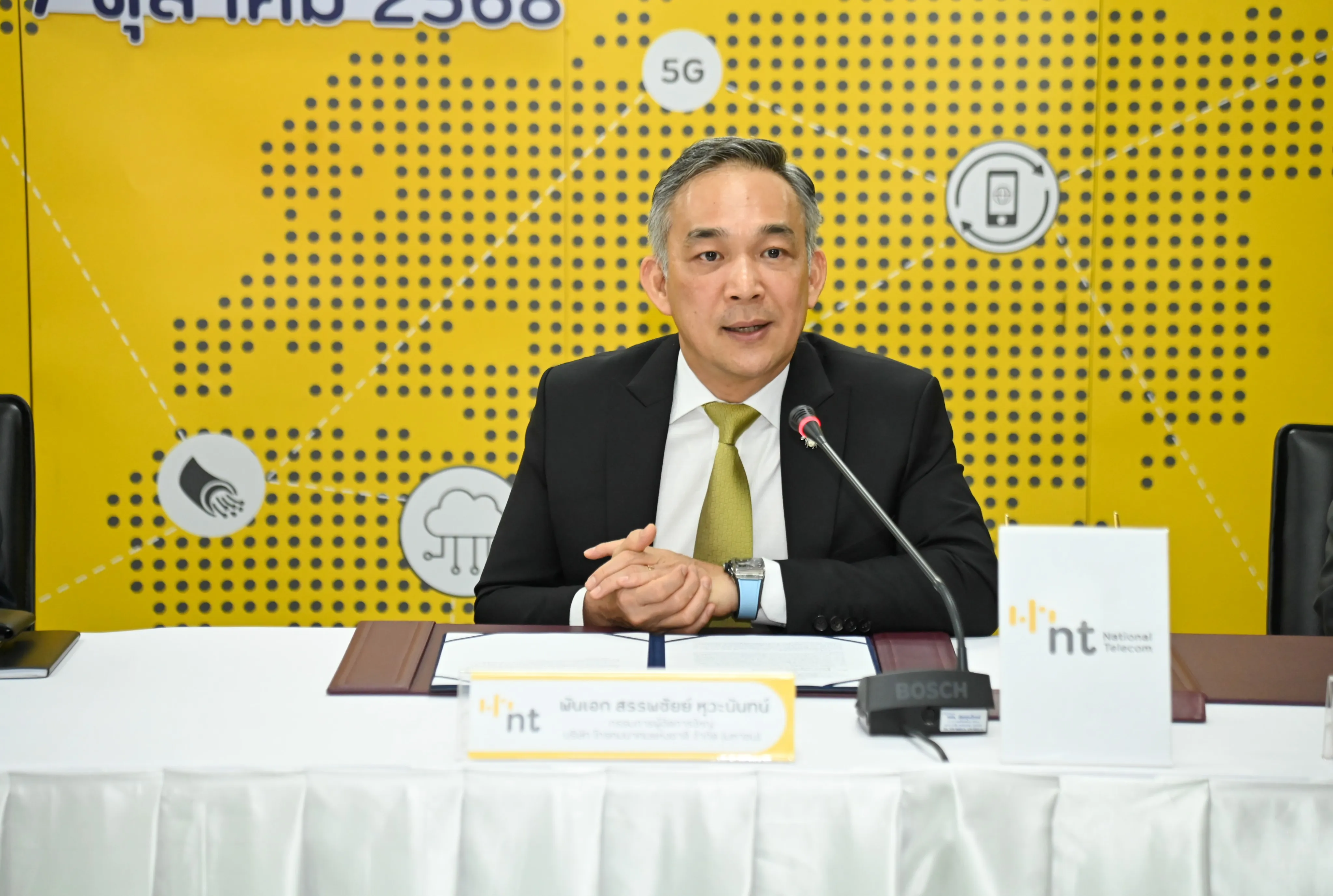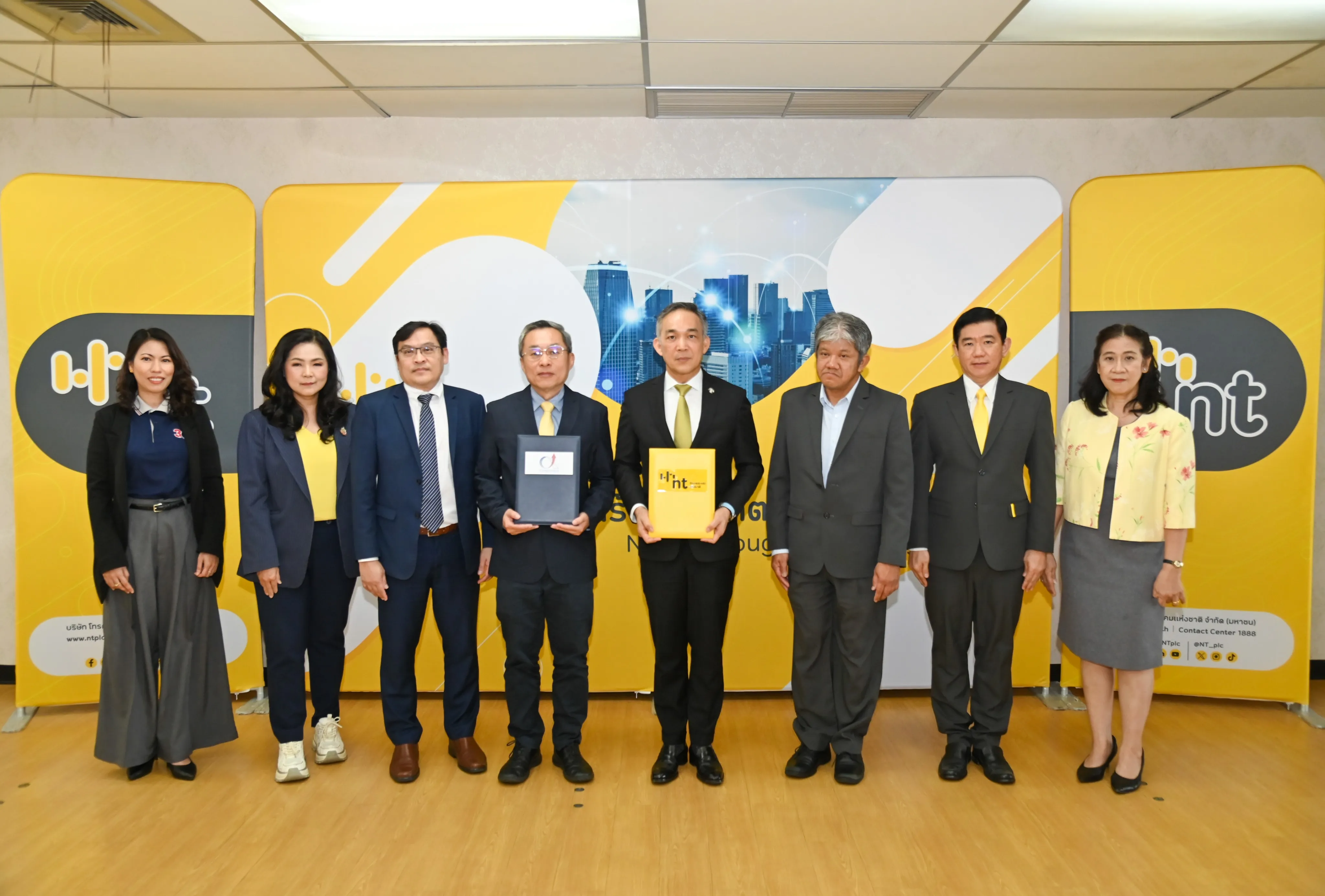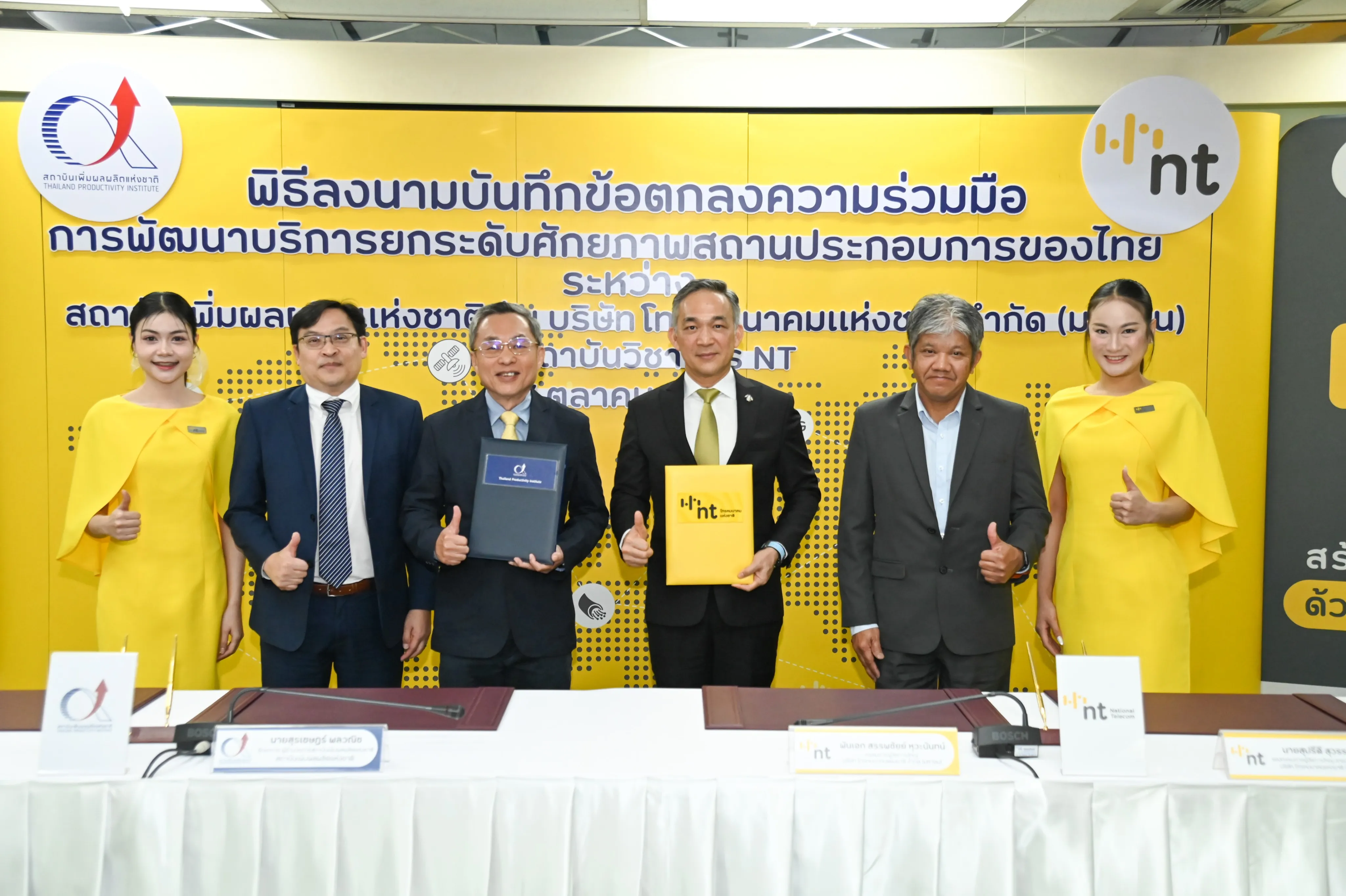 วันที่ 7 ตุลาคม 2568 ณ ห้องประชุม 1 ชั้น 3 อาคารกาญจนาภิเษก สถาบันวิชาการ อำเภอเมืองนนทบุรี จังหวัดนนทบุรี บริษัท โทรคมนาคมแห่งชาติ จำกัด (มหาชน) หรือ NT ลงนามบันทึกข้อตกลงความร่วมมือ ว่าด้วยการพัฒนาบริการยกระดับศักยภาพสถานประกอบการของไทย กับ สถาบันเพิ่มผลผลิตแห่งชาติ เพื่อผนึกกำลังในการส่งเสริมสนับสนุนการยกระดับทักษะด้านเทคโนโลยีดิจิทัลให้แก่บุคลากรในภาคส่วนต่าง ๆ ให้มีความพร้อมทางด้านดิจิทัล สามารถเป็นกำลังหลักในการเปลี่ยนผ่านองค์กรไปสู่ดิจิทัลได้อย่างยั่งยืน โดย พันเอก สรรพชัยย์ หุวะนันทน์ กรรมการผู้จัดการใหญ่ บริษัท โทรคมนาคมแห่งชาติ จำกัด (มหาชน) และนายสุรเชษฎ์ พลวณิช รักษาการผู้อำนวยการสถาบันเพิ่มผลผลิตแห่งชาติ ร่วมลงนาม โดยมีวัตถุประสงค์เพื่อยกระดับบุคลากรและผู้ประกอบการให้มีความรู้ ทักษะ และสมรรถนะที่สอดคล้องกับสถานการณ์ปัจจุบัน ด้วยการผสานจุดเด่นและความเชี่ยวชาญของทั้งสองหน่วยงานและสร้างโอกาสทางธุรกิจผ่านการดำเนินกิจกรรมการตลาดร่วมกัน