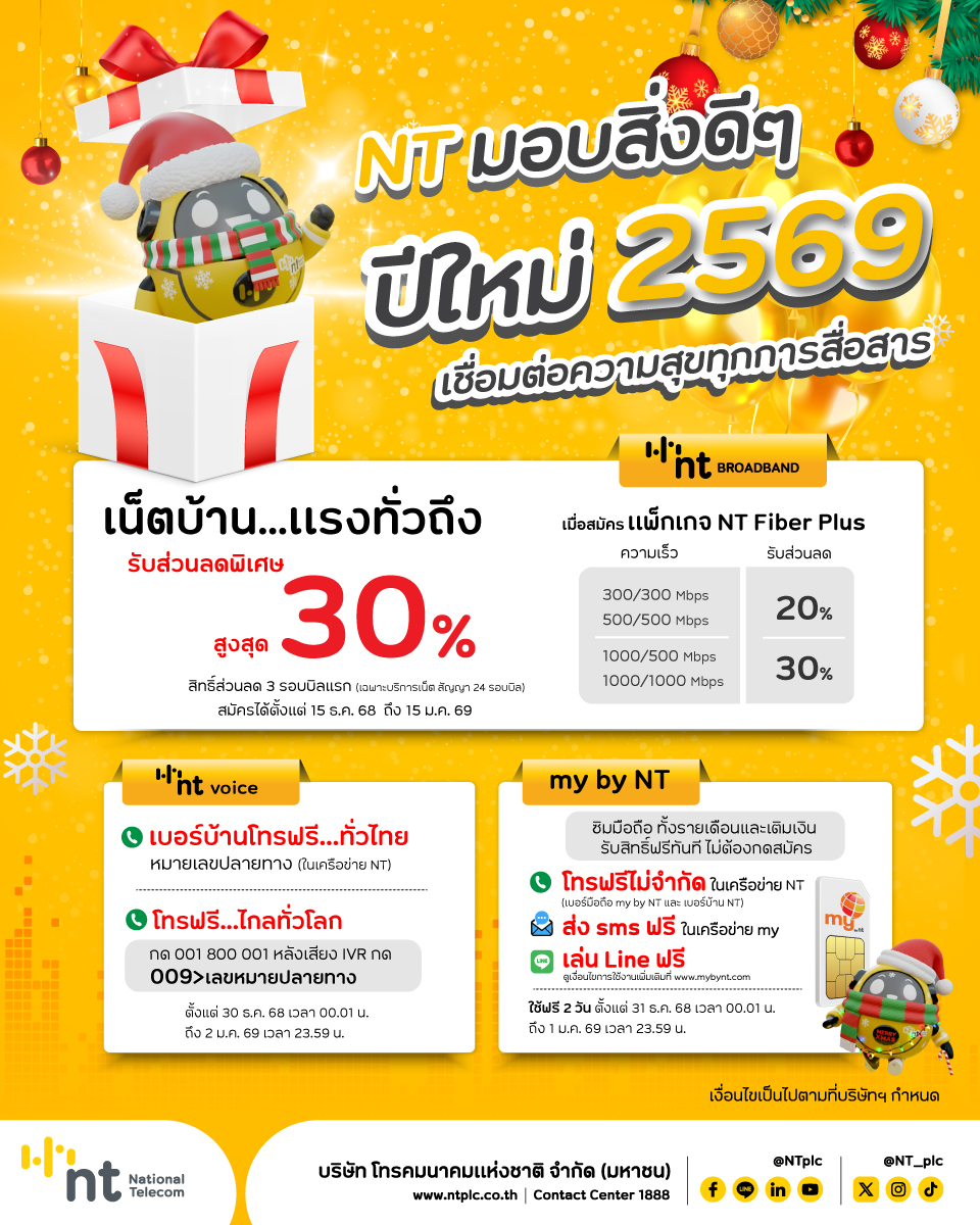 NT มอบสิ่งดีๆ ปีใหม่ 2569…เชื่อมต่อความสุขทุกการสื่อสาร