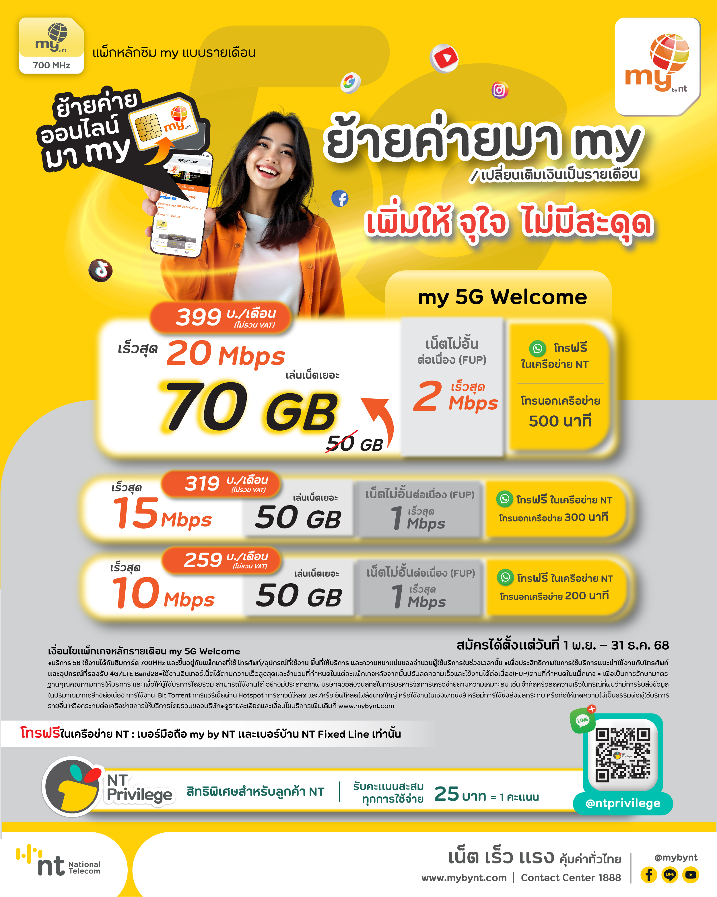 หรือสมัครได้ที่ ศูนย์บริการ NT ทุกสาขา