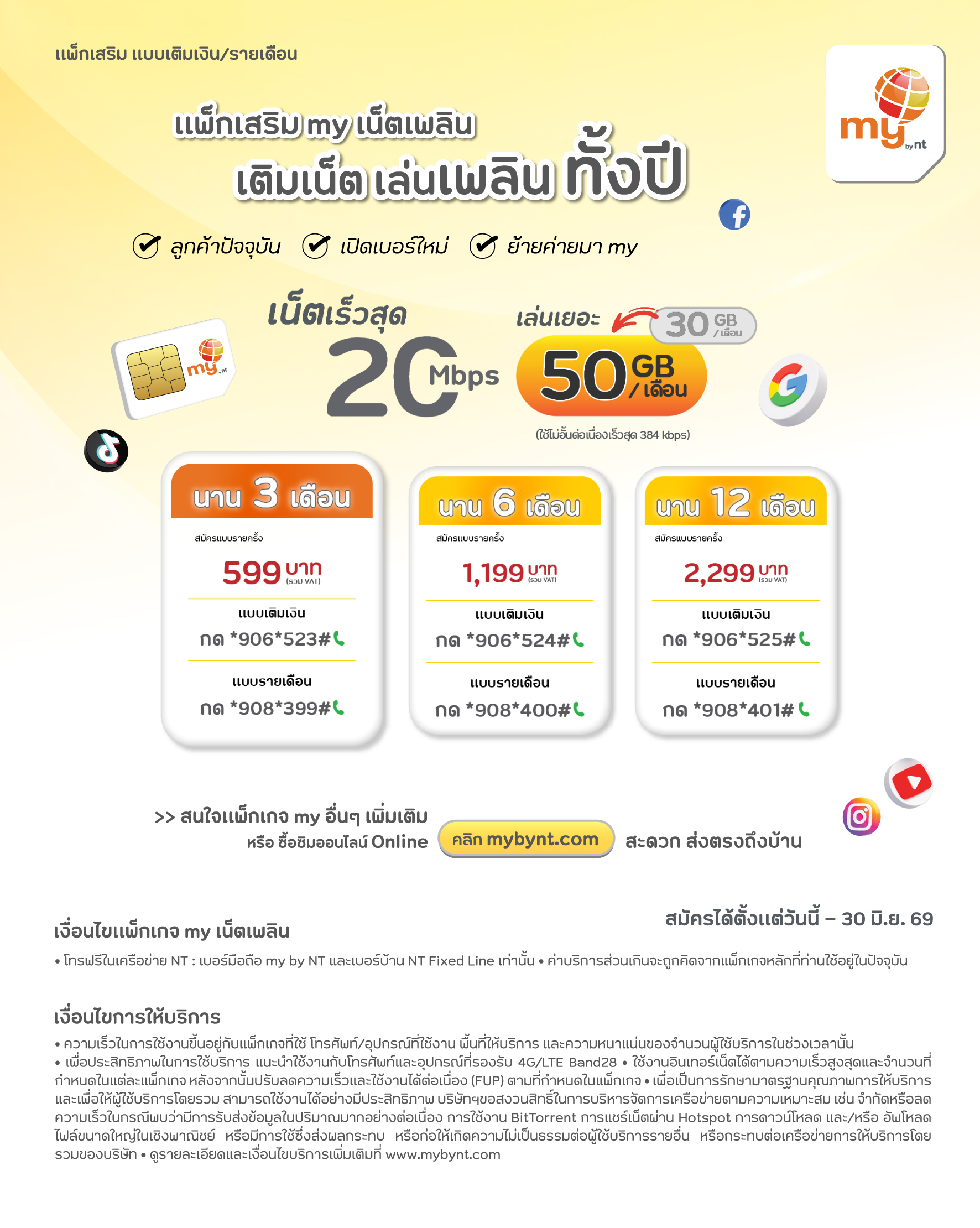 แพ็กเสริมเติมเน็ต จ่ายครั้งเดียว  เล่นยาวววทั้งปี  กับ my เน็ตเพลิน💥