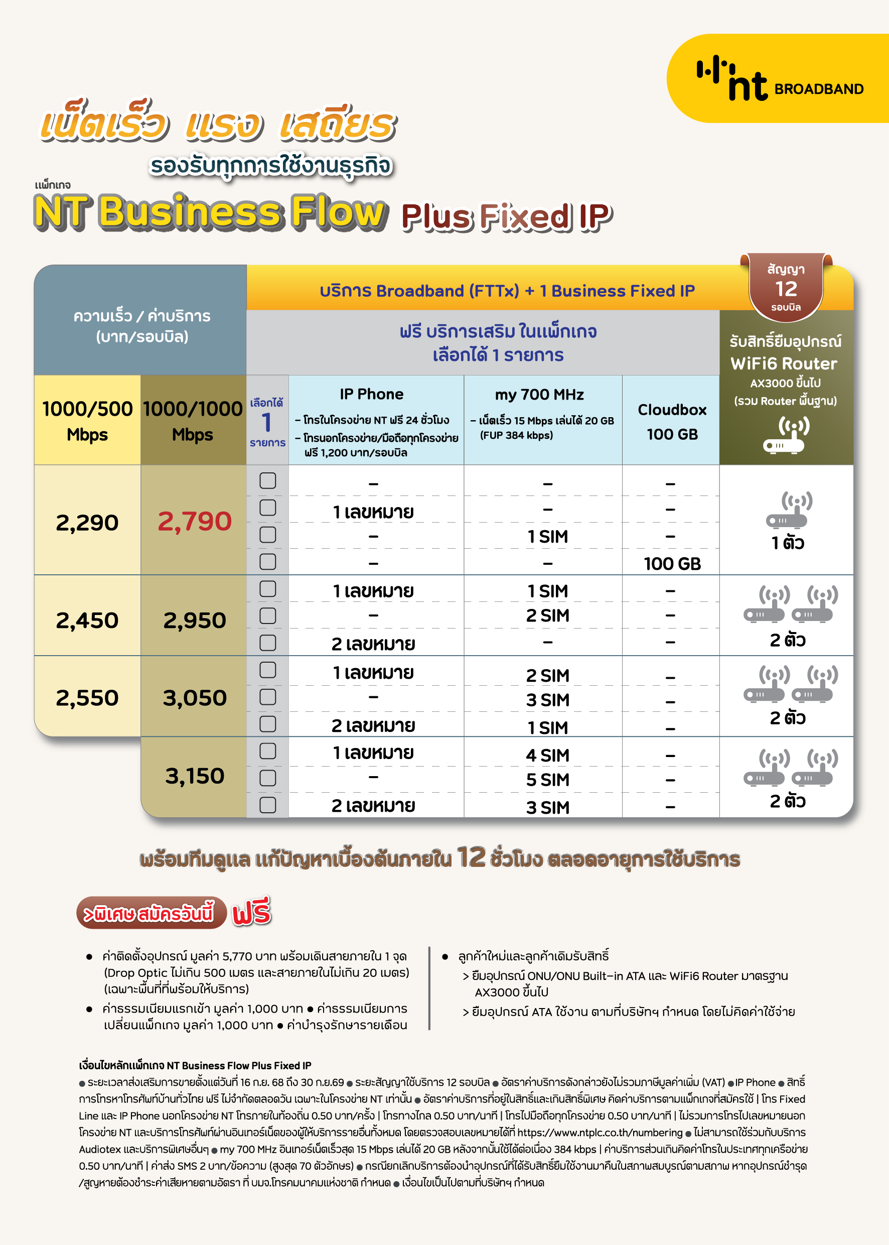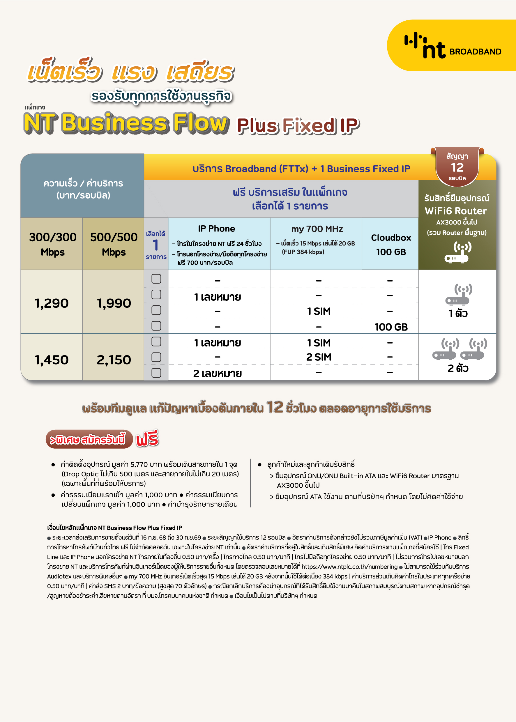 แพ็กเกจ NT Business Flow Plus Fixed IP