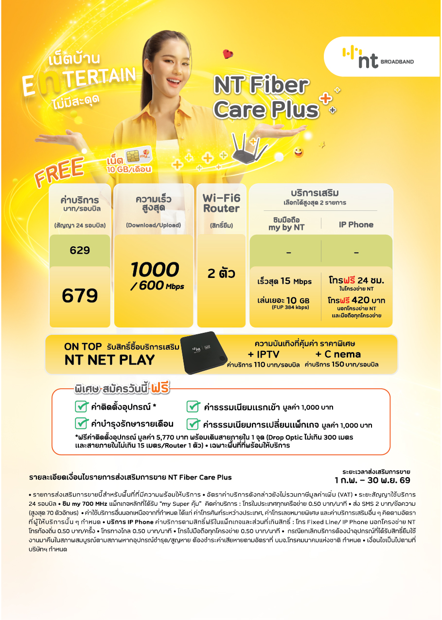 เพราะโบว์มี NT Broadband เน็ตบ้านแรง ครบ จบในแพ็กเดียว ✨