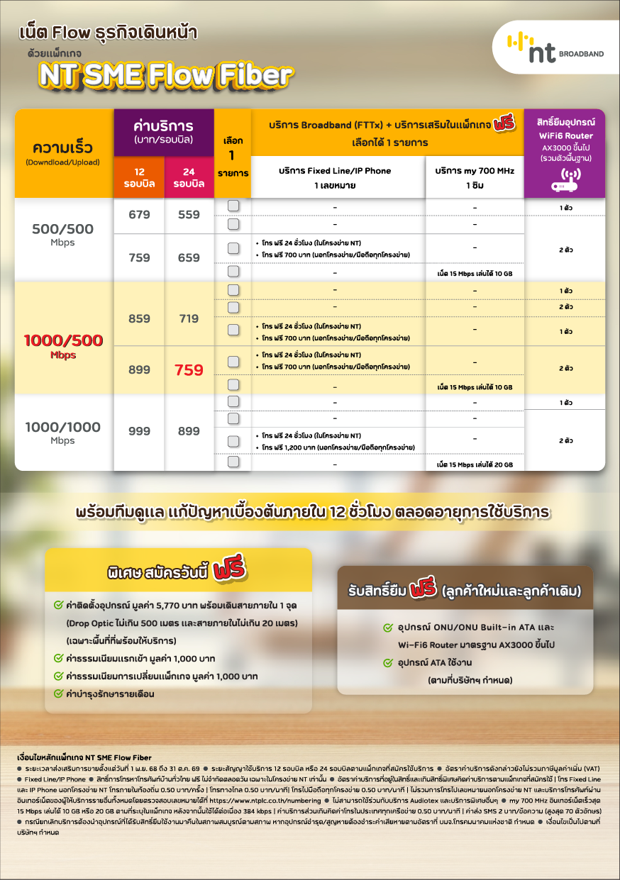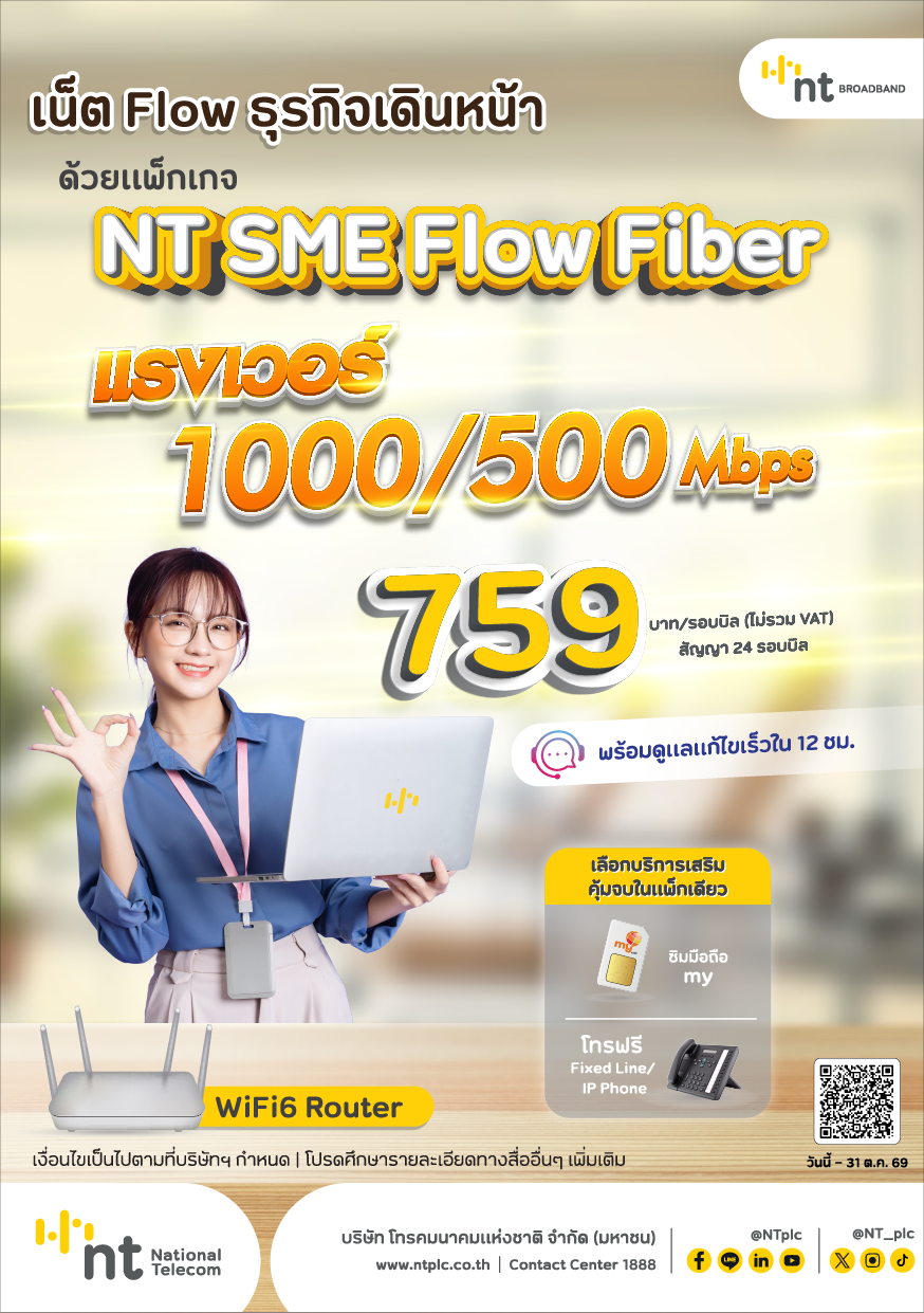เน็ต Flow ธุรกิจเดินหน้า ด้วย แพ็กเกจ NT SME Flow Fiber